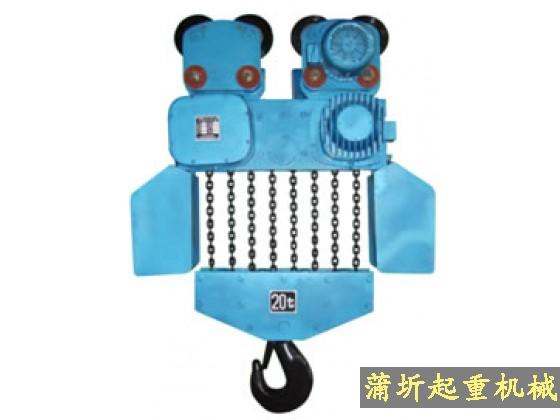 具有二十多年生产历史,产品技术成熟,质量稳定、结构简单,物美价廉。 1、 工作级别M4; 2、 单速2极,双速2/8极双绕组变极式锥形转子电机,F级绝缘,IP54防护等级; 3、 采用DT渗碳链条; 4、 数控加工链轮链窝尺寸精准,合金钢材料强度高耐磨,与链条啮合平稳; 5、 机械式超载离合器,也可选配电子超载限止器; 6、 齿轮传动为密封机油润滑,齿轮寿命长; 7、 起重量规格齐全,最大起重量可达32t是国内最大起重量的环链电动葫芦; 结构形式有固定式、小车式、 起升速度有单速、双速(2/8极4:1速比)